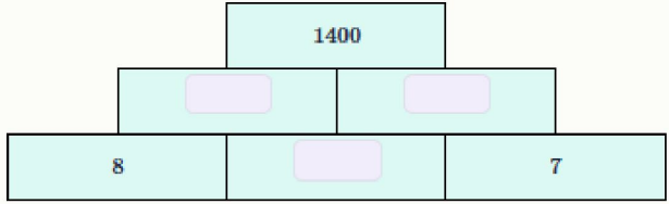6. В каждую клетку пирамиды на рисунке нужно записать число так, чтобы каждое число было равно произведению двух чисел, написанных под ним. Заполните пропуски.
